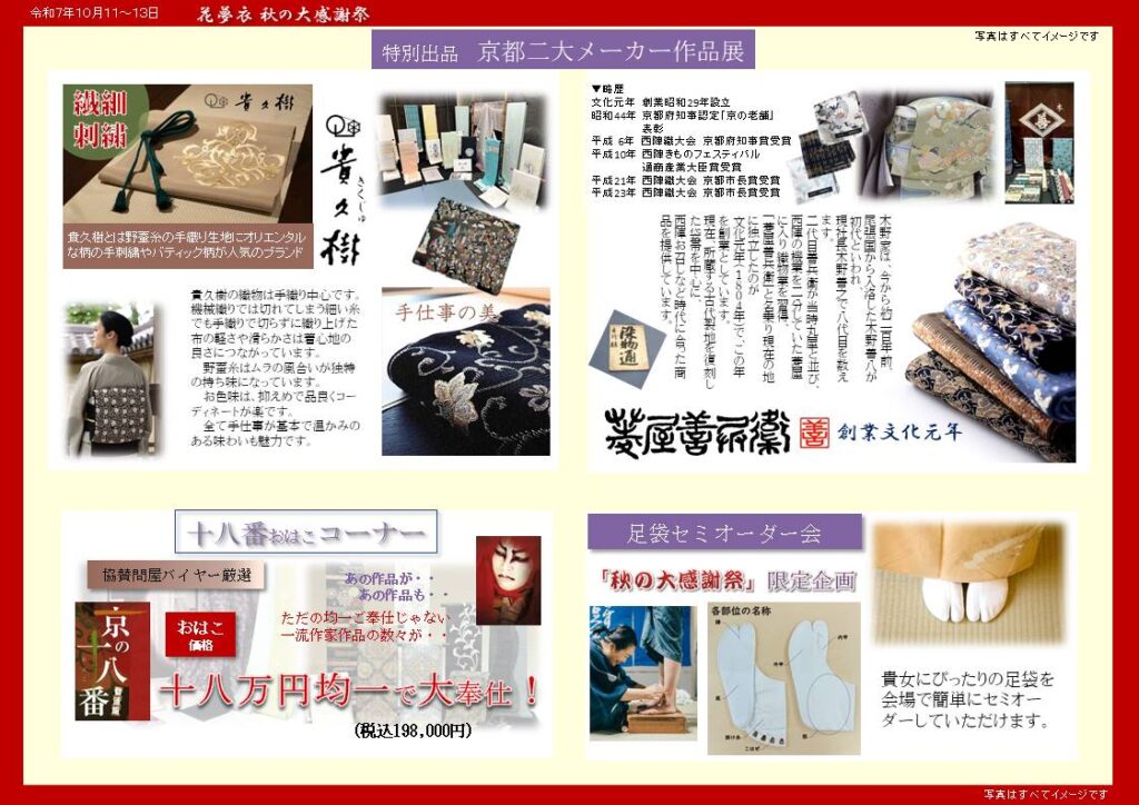 花夢衣でもいよいよ「秋の大感謝祭」開催です。どうぞご来場くださいませ。